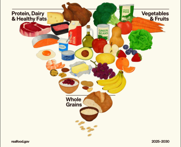 Proteínas, verduras, frutas, lácteos y grasas saludables como base de la nueva pirámide.